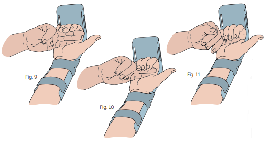 - De eerste week buigt u de vingers tot ongeveer een kwart van het hele buigtraject (fig. 9).