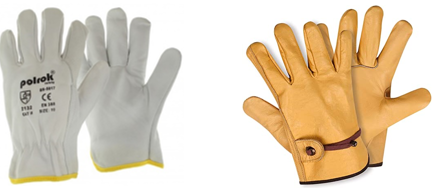 Leren werkhandschoenen t.b.v. goede bescherming tegen koude. Prijzen variëren van €4,- tot €50,- afhankelijk van de kwaliteit en maatvoering.