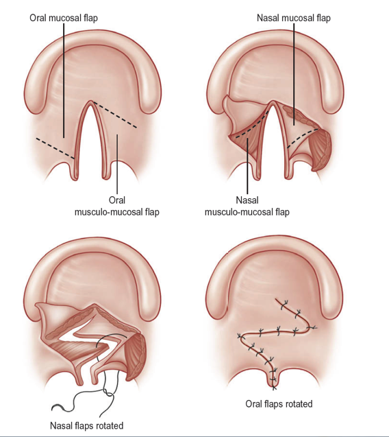 - De huig langer maken door weefsel van de wang gebruikt om de huig te verlengen (Buccale lap).