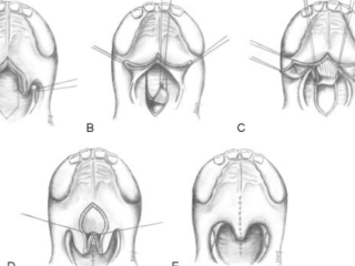 - De huig langer maken door verplaatsen van weefsel in de huig (Furlow plastiek).
