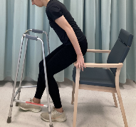 Als u eenmaal staat dan plaatst u het geopereerde been naast uw 'goede' been. Verdeel het gewicht gelijkmatig over beide benen terwijl u steun neemt op een loophulpmiddel. Gaan zitten Zet eerst het geopereerde been iets naar voren, neem steun op de stoelleuning en ga zitten. |
