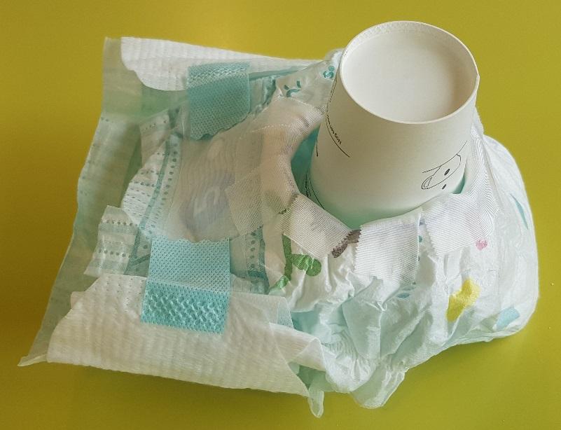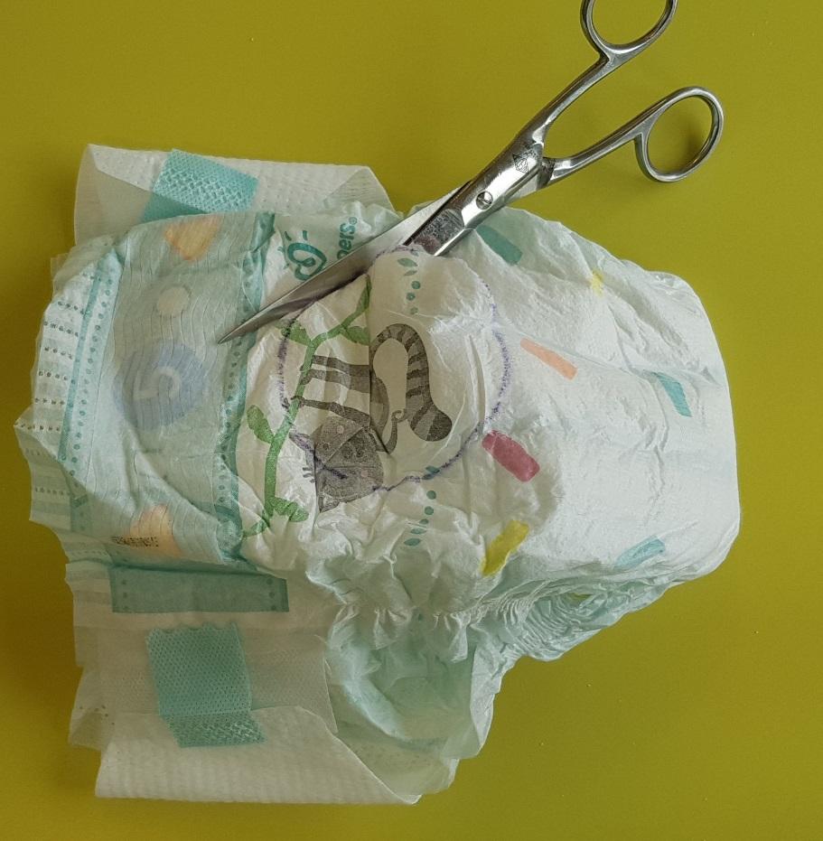 Teken met behulp van het bekertje of limonadeglas een cirkel op de voorkant van de luier.