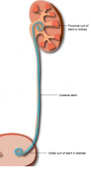 Links: Dubbel J katheter tussen nier en blaas (afbeelding: urology associates). Rechts: Nefrostomie (afbeelding: nursingtimes.net)