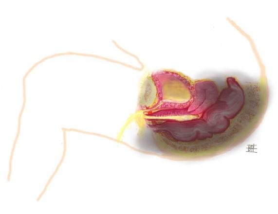 Bij vaginale reflux loopt de urine tijdens het plassen in de vagina (zie illustratie). Als het meisje na het plassen opstaat van de wc, druppelt de urine uit de vagina.