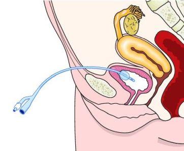 De ingreep gebeurt poliklinisch onder plaatselijke verdoving. Vooraf brengt de verpleegkundige soms eerst een blaaskatheter in via de plasbuis om de blaas te vullen met steriel water.